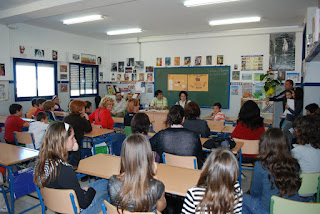 Grandioso éxito del Acto Poético de Justa González Franco ( acompañada del magistral cantautor José L. Feijóo ). Resulta difícil explicar con palabras, el sentimiento vivido, en esta hora y media, de pura comunicación entre la autora y su público (totalmente entregado). Quince preguntas de los niños, tres de las madres, siete poemas recitados, y mucha, mucha sapiencia en Justa.